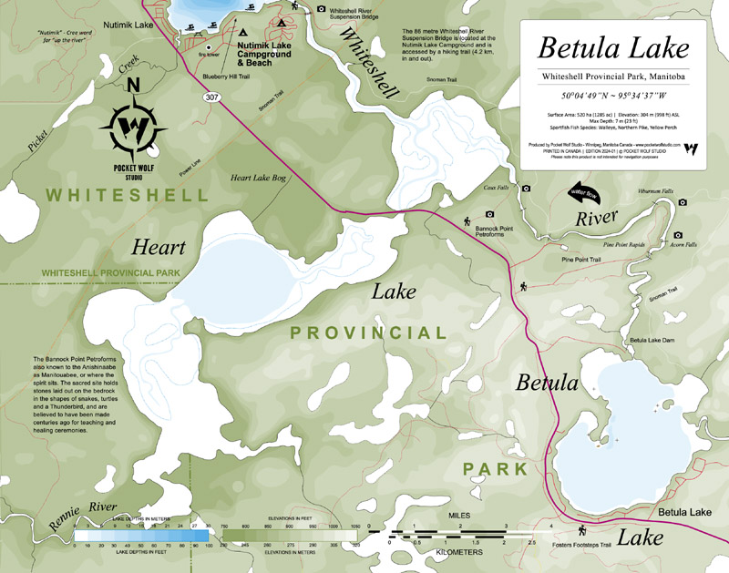 Whiteshell Provincial Park – includes depths and physical features for Betula and White Lakes