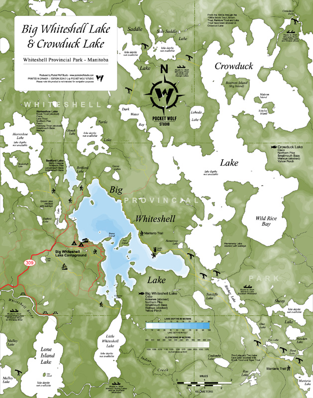 Whiteshell Provincial Park – includes depths and physical features for Big Whiteshell Lake