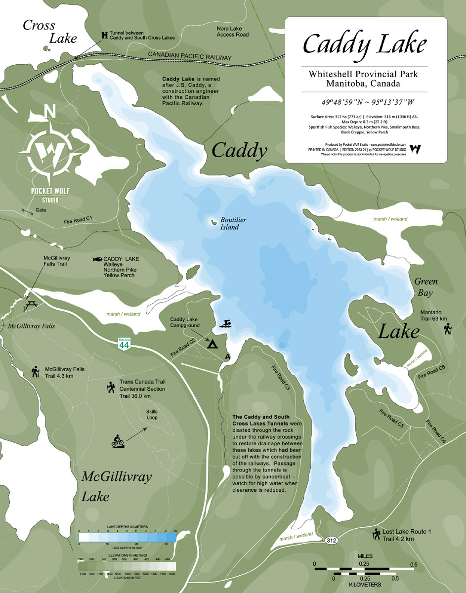 Pathfinder maps inclulde lake depths, land elevations, local points of interest, historical information, fisheries information, portages and trails, boat launches and access points, campgounds and recreational facilities and much more….