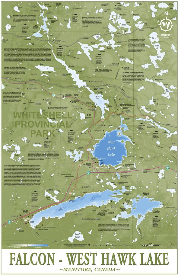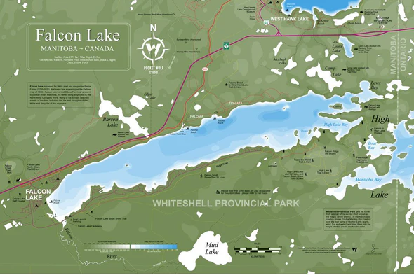 Whiteshell Provincial Park, Includes depths and physical features including Falcon, West Hawk, Starr, Caddy, South Cross and North Cross and Sailing Lakes