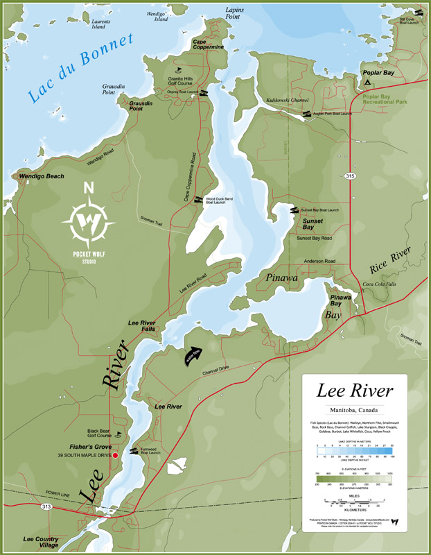 Lac Du Bonnet area – includes depths and physical features of Lee River
