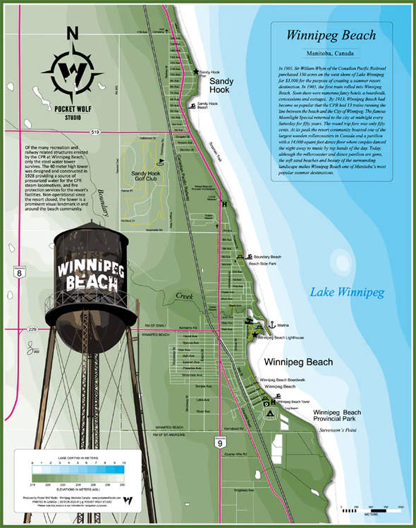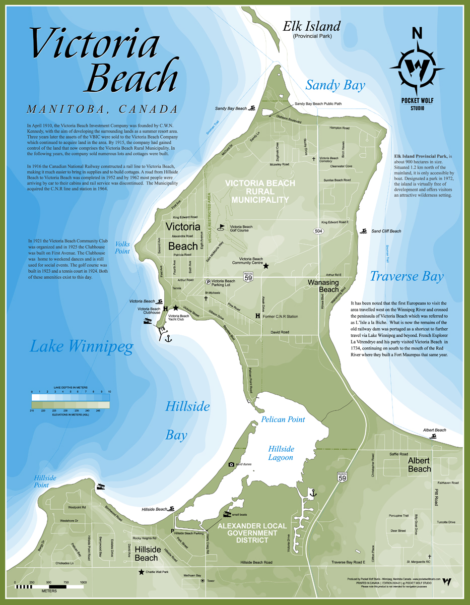 Victoria Beach – Lake Winnipeg including depths and physical features.